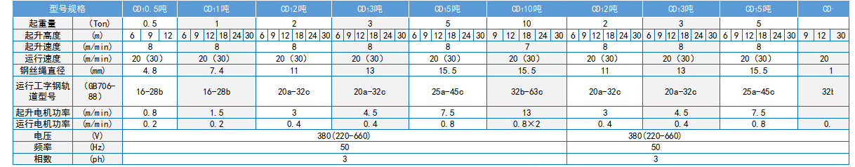 起升高度 m 6 9 12 16 24 32 8 10 16 20 6 8 12 16 12 16 24 32 36 42 48
