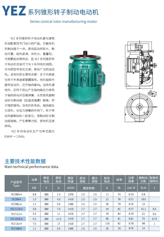 YEZ系列錐形轉子制動電動機